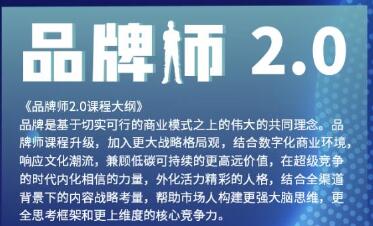 《品牌师2.0课程大纲》品牌是基于切实可行的商业模式之上的伟大的共同理念。品牌师课程升级,加入更大战略格局观,结合数字化商业环境,响应文化潮流,兼顾低碳可持续的更高远价值,在超级竞争的时代内化相信的力量,外化活力精彩的人格,结合全渠道背景下的内容战略考量,帮助市场人构建更强大脑思维,更全思考框架和更上维度的核心竞争力。