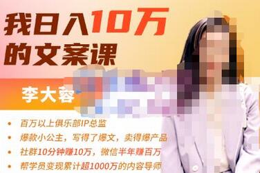 李大蓉·我日入10万的文案课第五期,教你如何用文案写作,赚下一个百万-价值1049元