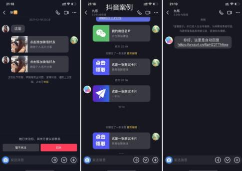 在抖音和快手,你是否遇到发送微信号给客户,客户添加率太低,导致转换私域流量效果一直达不到预期效果,不妨试下这款私信小卡片,给客户发送卡片,客户点击卡片后自动跳转添加微信或者打开指定网址,可以有效的提高在抖音和快手引流加微信的效果。
